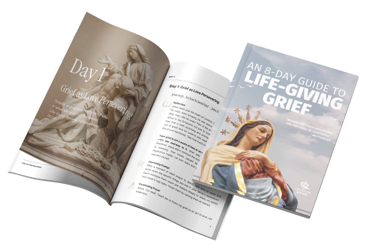 Purchase our award-winning book Life-Giving Wounds: A Catholic Guide to Healing for Adult Children of Divorce or Separation (Ignatius Press, 2023) and more products to aid your healing.