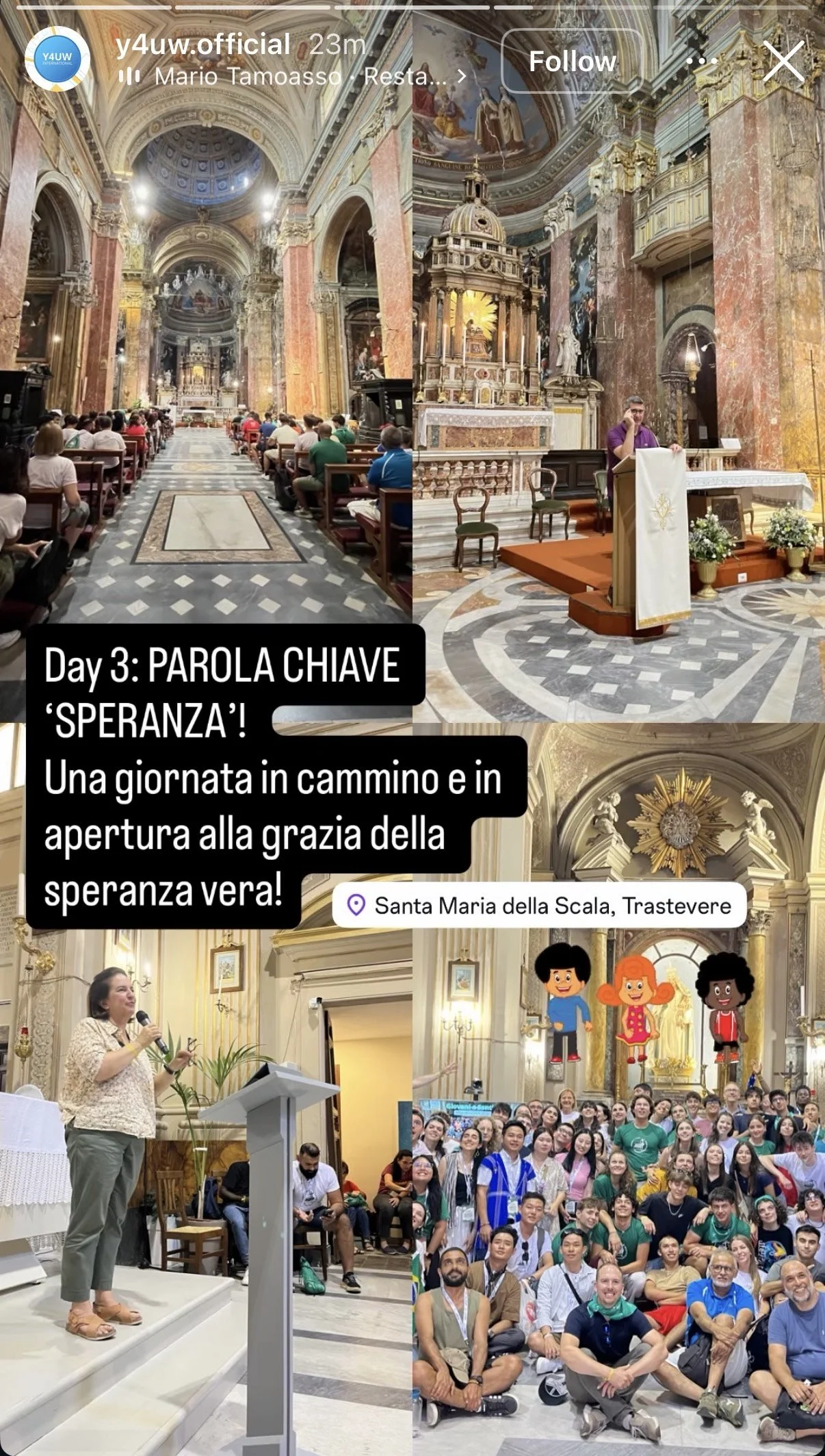 An Instagram screenshot of a guided tour and catechesis. Translation: “Keyword for Day 3 is ‘Hope’! A day of walking and openness to the grace of true hope!”