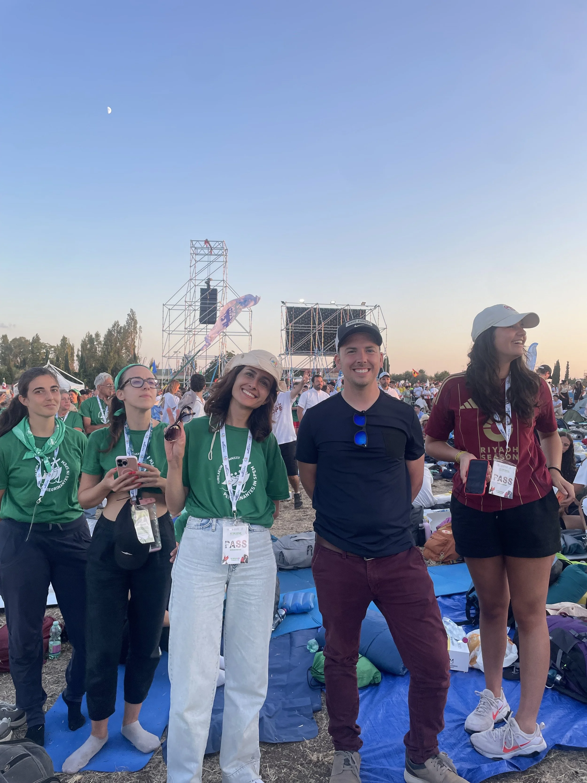 The Youth Jubilee culminated with a long trek through the heat to Tor Vergata University outside the city limits. Over one million faithful gathered in this field for a vigil on Saturday, August 2nd, an overnight stay, and Holy Mass on Sunday, August 3rd. The vigil was incredible – after music by talented artists such as Matt Maher and Sarah Kroger, Pope Leo arrived by helicopter and led the group in prayer. One of the most remarkable experiences was that, as each song ended, an echo of the final note could be heard for an extra couple of seconds as the sound traveled far beyond the pilgrims to the Prenestini mountains and back. It sounded like all of creation was filled with hope! It reminded me of a passage from St. Paul: